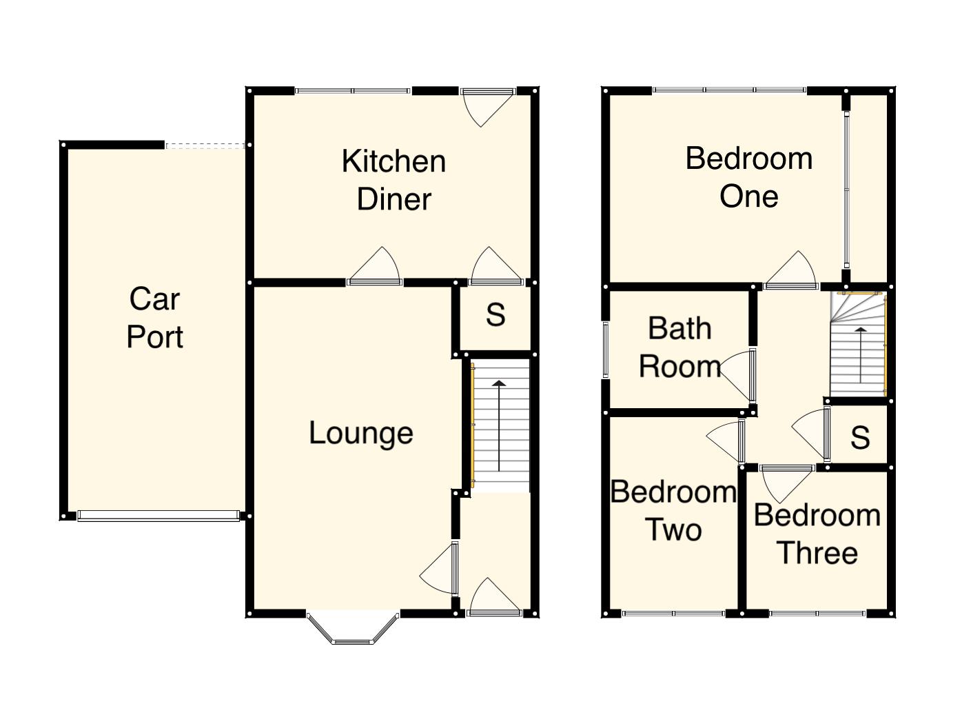 To the front is a low maintenance gravelled garden and tarmac drive which in turn leads to the property and car port.